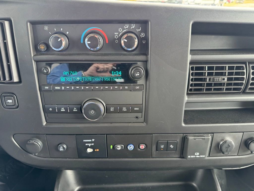 Chevrolet Certified Pre-Owned Certified, 12-Passenger Seating (2-3-3-4 Seating Config), 16 x 6.5 Steel Wheels, 2 Speakers, 220 Amps Alternator, 3.42 Rear Axle Ratio, 3rd row seats: bench, 4-Wheel Disc Brakes, 4th-Row Bench Seat, 6-Way Power Driver Seat Adjuster, 6-Way Power Front Passenger Seat Adjuster, 770 Cold-Cranking Amps Primary Battery, ABS brakes, Air Conditioning, AM/FM radio, AM/FM Stereo w/MP3 Player, Bluetooth For Phone, Bumpers: chrome, Chrome Appearance Package, Chrome Grille, Compass, Custom Cloth Seat Trim, Delay-off headlights, Deluxe Console w/Swing Out Storage Bin, Driver door bin, Driver vanity mirror, Driver's Seat Mounted Armrest, Dual front impact airbags, Dual front side impact airbags, Electric Rear-Window Defogger, Electronic Stability Control, Emergency communication system: OnStar and Chevrolet connected services capable, Forward Collision Alert, Front & Rear Chrome Bumpers w/Step-Pad, Front anti-roll bar, Front Bucket Seats, Front reading lights, Front wheel independent suspension, Full-Floor Color-Keyed Carpeting, Fully automatic headlights, Heated door mirrors, Heavy-Duty Rear Locking Differential, Heavy-Duty Trailering Equipment, High & Low Dual-Note Horn, Illuminated entry, Lane Departure Warning System, Leather-Wrapped Steering Wheel, Low tire pressure warning, Occupant sensing airbag, Outside Temperature Display, Overhead airbag, Panic alarm, Passenger cancellable airbag, Passenger door bin, Passenger seat mounted armrest, Passenger vanity mirror, Power door mirrors, Power steering, Power windows, Preferred Equipment Group 1LT, Radio: AM/FM Stereo w/MP3 Player/Seek & Scan, Rear air conditioning, Rear Park Assist, Rear reading lights, Reclining Front Bucket Seats w/Inboard Armrests, Remote Keyless Entry, Remote keyless entry, Remote Vehicle Starter System, Security system, Side Blind Zone Alert, SiriusXM Radio, Sliding Passenger-Side Door, Speed control, Steering Wheel Mounted Audio Controls, Tachometer, Theft Alarm Notification, Tilt steering wheel, Traction control, Trailer Hitch Weight Distributing Platform, Trip computer, USB Port, Variably intermittent wipers, Voltmeter, Wheel Trim w/Chrome Center Caps.