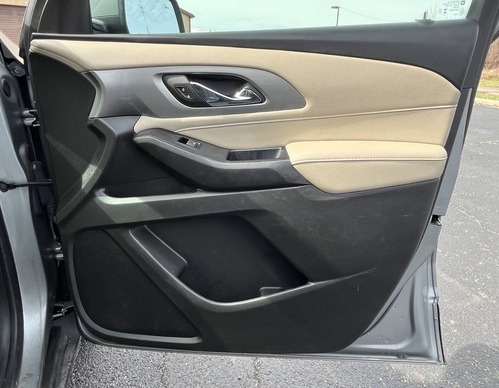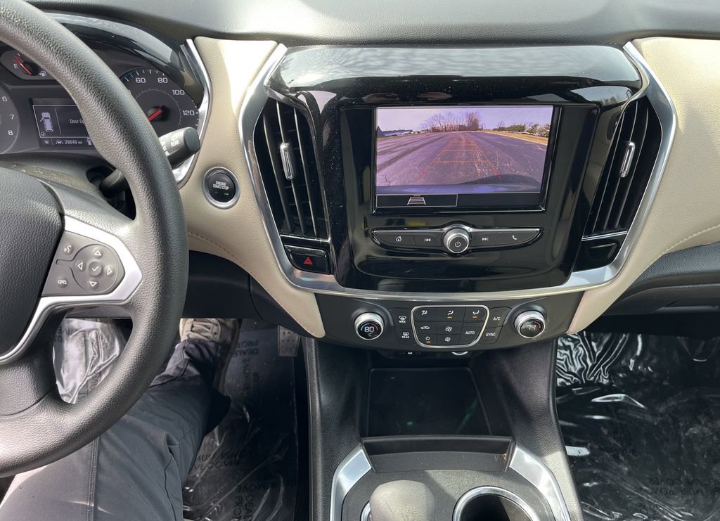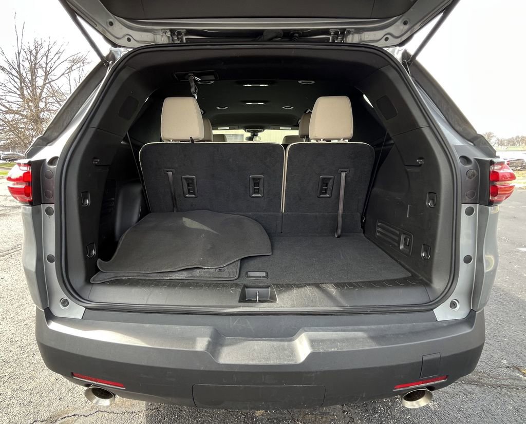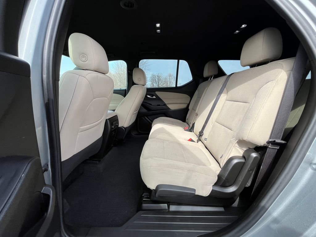 2-Way Manual Front Passenger Seat Adjuster, 3.49 Axle Ratio, 3rd row seats: split-bench, 4-Wheel Disc Brakes, 6 Speakers, 6-Speaker Audio System Feature, 6-Way Manual Driver Seat Adjuster, ABS brakes, Air Conditioning, Alloy wheels, AM/FM radio: SiriusXM, Apple CarPlay/Android Auto, Auto High-beam Headlights, Automatic temperature control, Brake assist, Bumpers: body-color, Compass, Delay-off headlights, Driver door bin, Driver vanity mirror, Dual front impact airbags, Dual front side impact airbags, Electronic Stability Control, Emergency communication system, Exterior Parking Camera Rear, Four wheel independent suspension, Front anti-roll bar, Front Bucket Seats, Front Center Armrest, Front dual zone A/C, Front reading lights, Fully automatic headlights, Heated door mirrors, Illuminated entry, Lane Change Alert w/Side Blind Zone Alert, Low tire pressure warning, Not Equipped w/Rear Park Assist (060), Occupant sensing airbag, Outside Heated Power-Adjustable Mirrors, Outside temperature display, Overhead airbag, Overhead console, Panic alarm, Passenger door bin, Passenger vanity mirror, Power door mirrors, Power steering, Power windows, Preferred Equipment Group 1LS, Premium Cloth Seat Trim, Radio data system, Radio: Chevrolet Infotainment System AM/FM Stereo, Rear air conditioning, Rear anti-roll bar, Rear Cross Traffic Alert, Rear Park Assist w/Audible Warning, Rear reading lights, Rear window defroster, Rear window wiper, Remote keyless entry, Safety Package, Security system, SiriusXM Radio, Speed control, Speed-sensing steering, Split folding rear seat, Spoiler, Steering wheel mounted audio controls, Tachometer, Telescoping steering wheel, Tilt steering wheel, Traction control, Trip computer, Variably intermittent wipers, Voltmeter, Wheels: 18 Bright Silver Painted Aluminum.