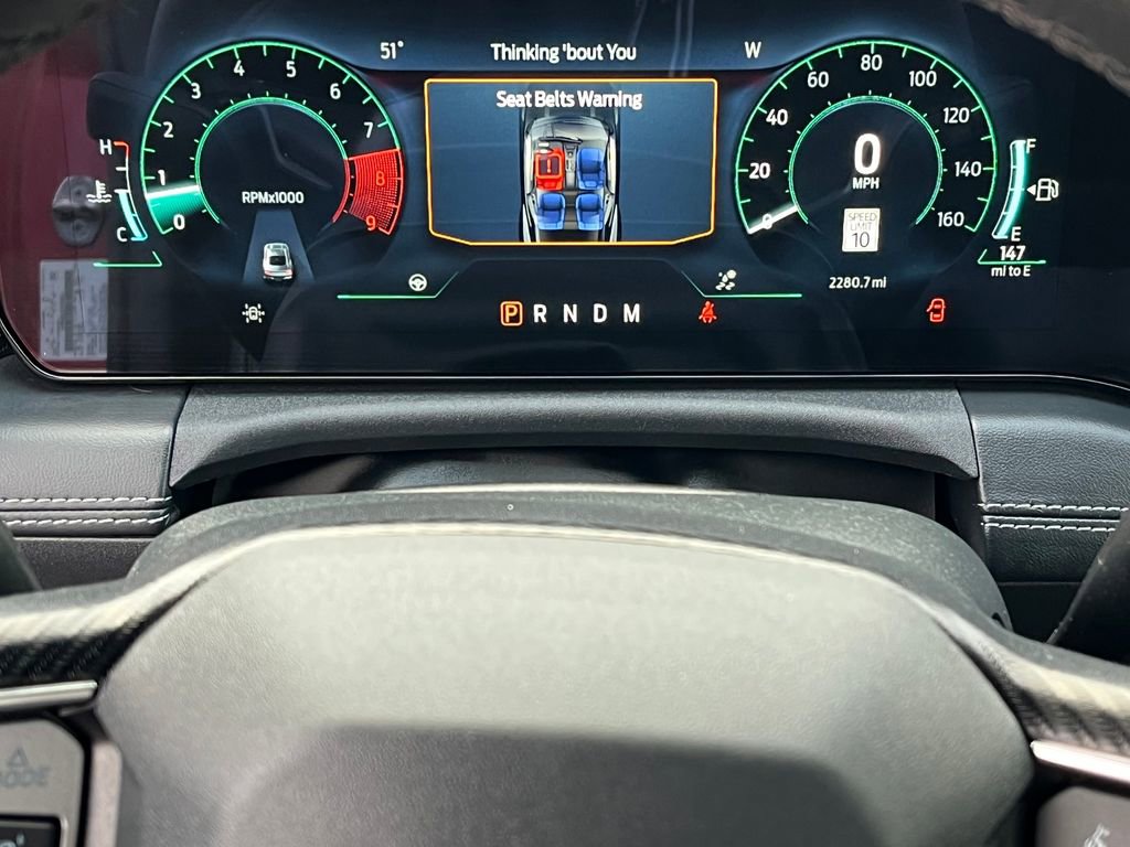 19 Branded Brake System w/Performance Linings, 4-Wheel Disc Brakes, ABS brakes, Air Conditioning, Alloy wheels, AM/FM Stereo, Auto High-beam Headlights, Automatic temperature control, Brake assist, Bumpers: body-color, Compass, Delay-off headlights, Driver door bin, Driver vanity mirror, Dual front impact airbags, Dual front side impact airbags, Electronic Stability Control, Emergency communication system: 911 Assist, Equipment Group 401A High Package, Exterior Parking Camera Rear, Ford Co-Pilot360 Assist+, Four wheel independent suspension, Front anti-roll bar, Front Bucket Seats, Front Center Armrest, Front reading lights, Fully automatic headlights, Illuminated Door-Sill Scuff Plates, Illuminated entry, Knee airbag, Leather Shift Knob, Leather steering wheel, Low tire pressure warning, Occupant sensing airbag, Outside temperature display, Overhead airbag, Overhead console, Panic alarm, Passenger door bin, Passenger vanity mirror, Power door mirrors, Power steering, Power windows, Radio data system, Rain sensing wipers, Rear anti-roll bar, Rear Parking Sensors, Rear window defroster, Red Painted Brake Calipers w/White Logo, Remote keyless entry, Security Package, Speed control, Speed-sensing steering, Speed-Sensitive Wipers, Split folding rear seat, Spoiler, Sport steering wheel, Steering wheel mounted audio controls, SYNC 4.0 QNX, Tachometer, Telescoping steering wheel, Tilt steering wheel, Traction control, Trip computer, Variably intermittent wipers, Voltmeter, Wheels: 19 x 8.5 Shadow Silver-Painted Aluminum.